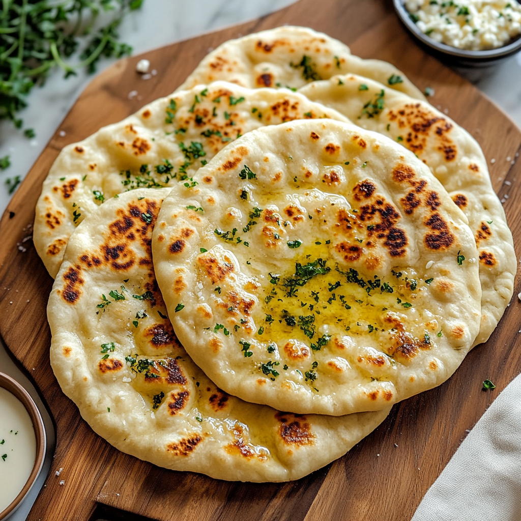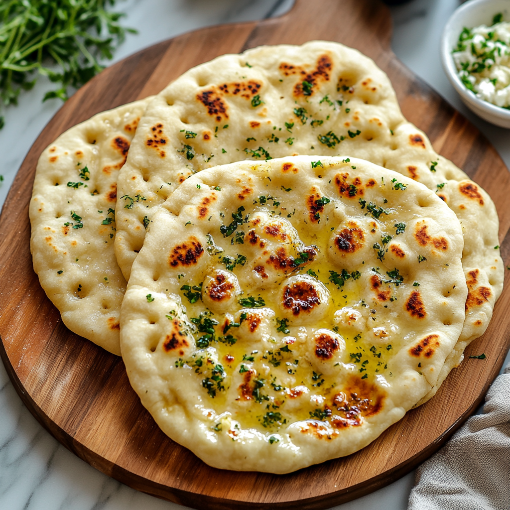 • Chopped herbs: Sprinkle freshly chopped parsley or cilantro on top of the warm naan for a pop of color and freshness.