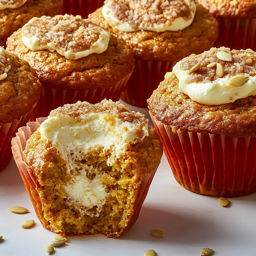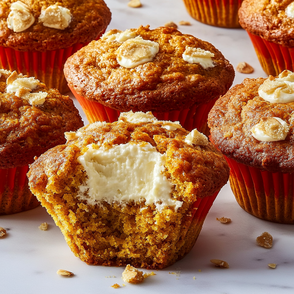 The combination of moist pumpkin spice muffin and creamy tangy center truly elevates these muffins into a delicious fall treat that’s perfect for any occasion!