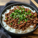 Now comes the fun part! Serve your flavorful beef mixture over a generous scoop of rice. Top with additional green onions and any optional toppings you like—maybe some sesame seeds or a perfectly fried egg on top!
