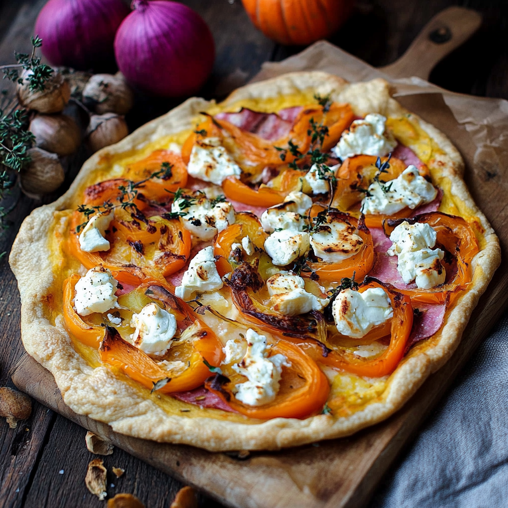 Enjoy this scrumptious Kürbis-Flammkuchen mit Feta as part of your next meal—it’s sure to become a favorite!