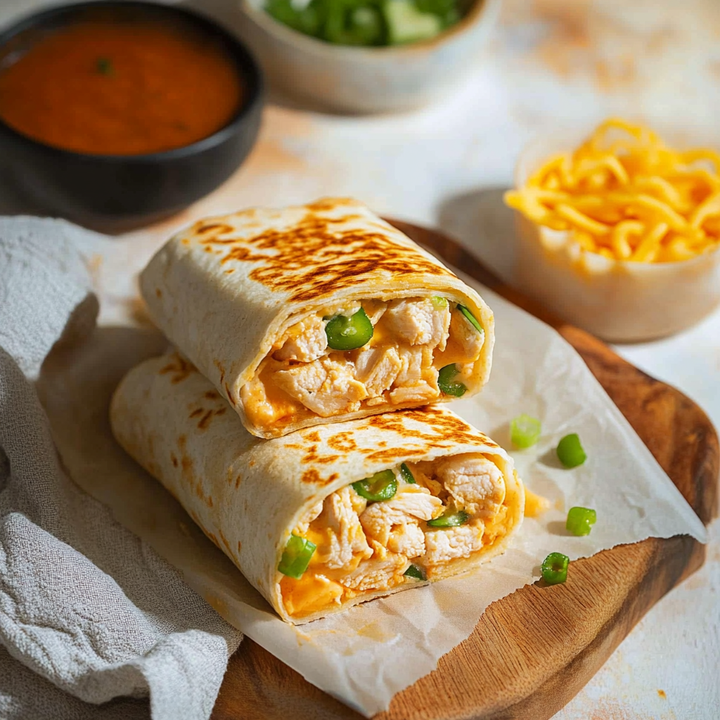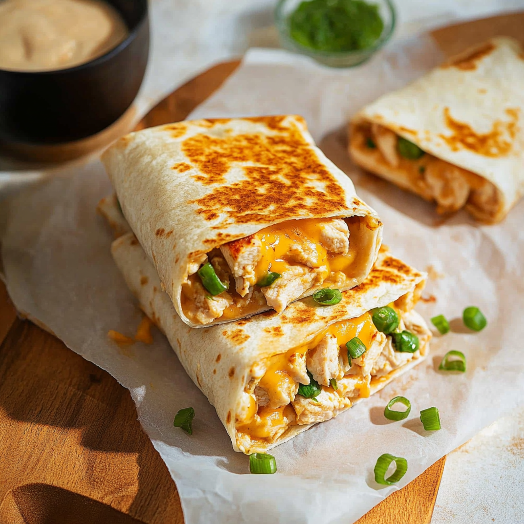 Sour cream, ranch dressing, or a spicy salsa complement these flavorful wraps nicely.
