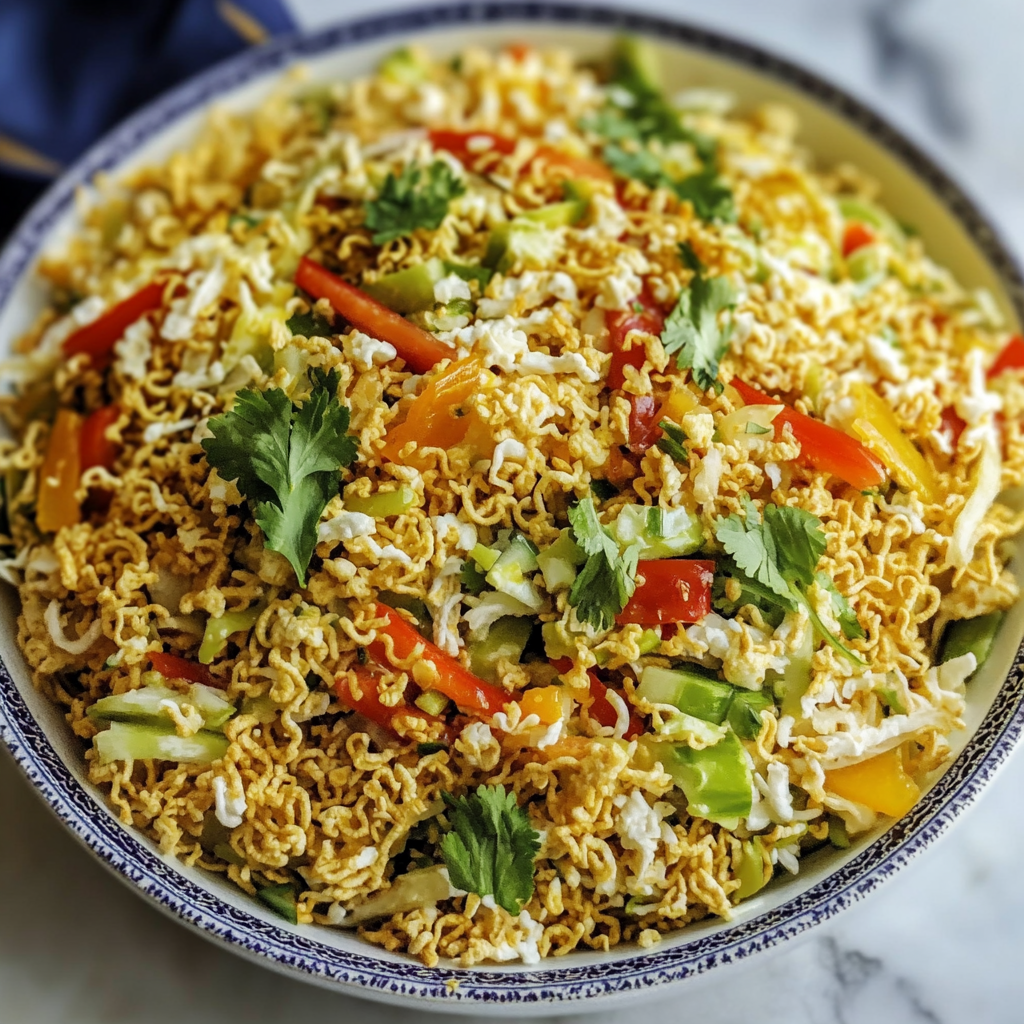 As I take you through this recipe, I want you to know that every ingredient plays a vital role in creating this delicious medley. You’ll find yourself captivated by the contrast between the crispy coleslaw mix and the tender crumbles of Ramen noodles, all enveloped in a dressing that’s both sweet and tangy, with just enough nuttiness from sesame oil to elevate it to new heights. This is not merely a salad; it’s a bridge between tradition and innovation, where each element harmonizes beautifully, making it perfect for potlucks, summer barbecues, or even as a refreshing side on chilly evenings when you want something light yet fulfilling.