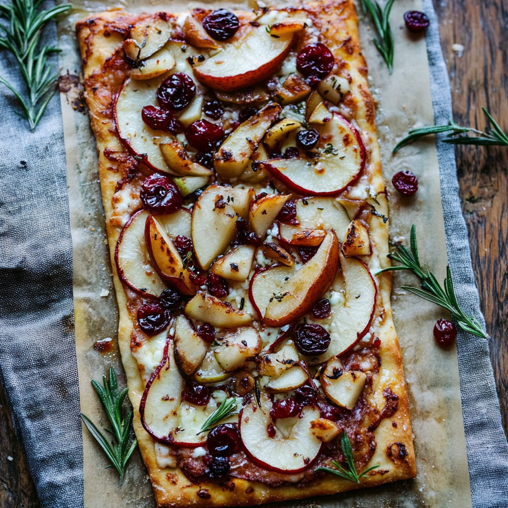 If you’re searching for a delightful appetizer that perfectly balances sweet and savory flavors, look no further than this Roasted Pear, Cranberry, and Brie Flatbread. With tender roasted pears, tart cranberries, and creamy Brie cheese coming together on a crispy flatbread, this dish promises to impress your guests at any gathering or make for a cozy family night snack.
