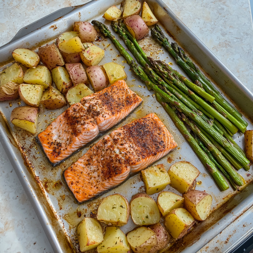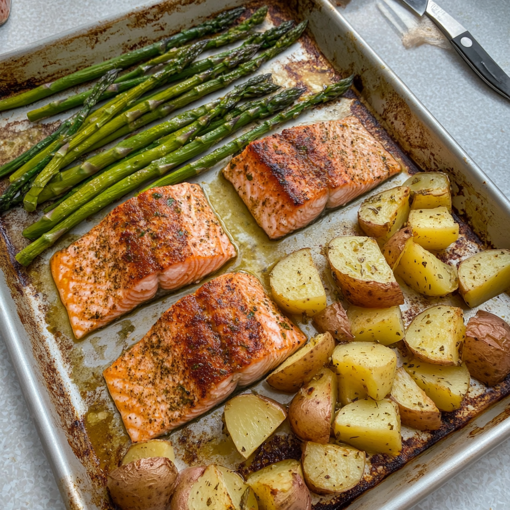 Salmon, Potato, + Asparagus Sheet Pan Meal